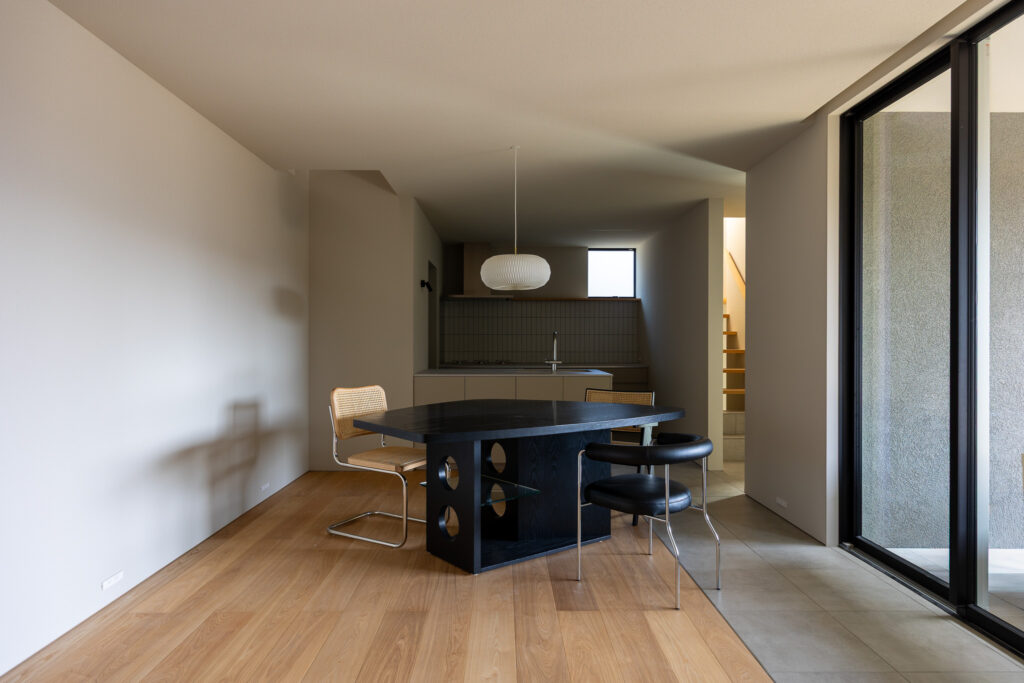 中庭を眺めながら家族団らんのダイニングスペース。