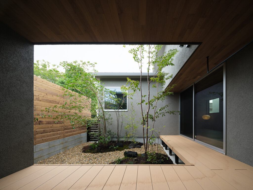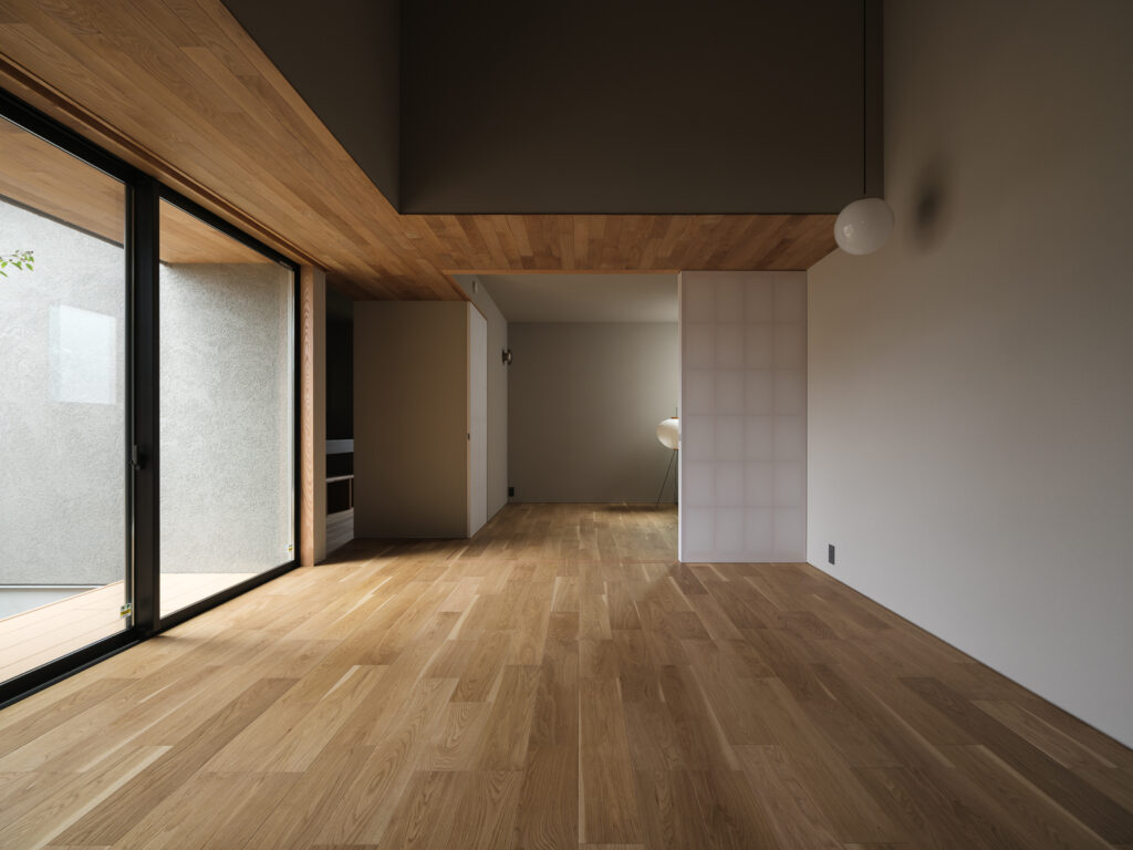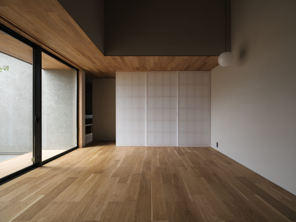 天井高さを下げることでより吹抜けに広がりを感じれる空間となりました。